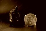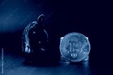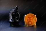 Bitcoin btc cryptocurrency coins on table and digital currency money concept