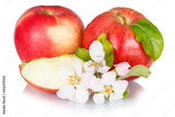 Apples fruits red apple fruit with leaves and blossoms isolated on a white background