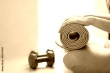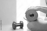 Young asian woman holding a yoga mat with fitness sport training club background, sport and healthy lifestyle concept