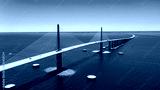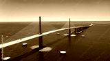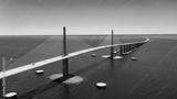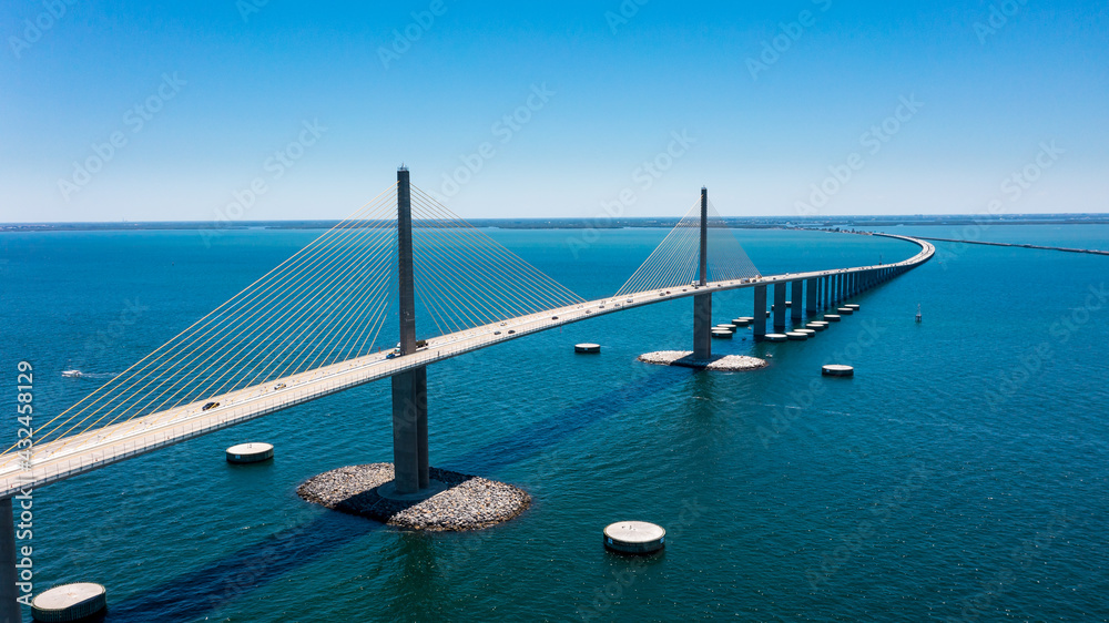 Sunshine Skyway Bridge in Tampa Bay Florida. Large Suspension Bridge that ships pass underneath. Florida gulf coast fishing pier.