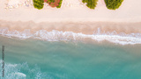 Panorama top view of blue aqua sea and white sand. Capture sea wave and beach in summer by drone.