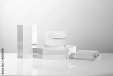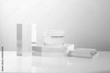 mockup of beauty fashion cosmetic makeup bottle lotion product with skincare healthcare concept on palm leaf tree background