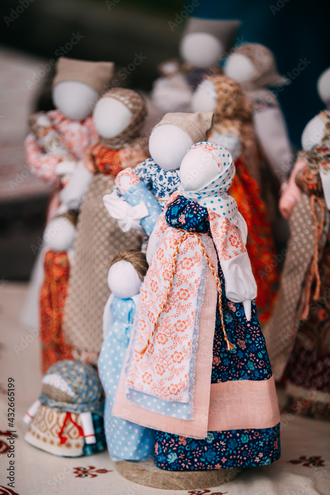 Russian Folk Doll. National Traditional Folk Dolls Are Popular Souvenirs From Russia