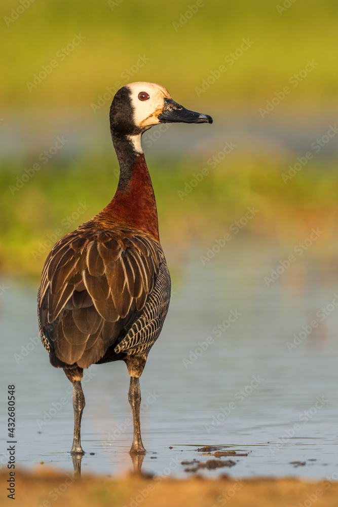 White-faced Whistling-duck - Dendrocygna viduata, beatiful colored duck from African and South American fresh waters, Ziway lake, Ethiopia.