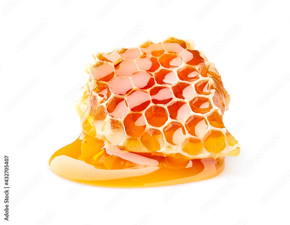 Honeycomb in closeup on white background