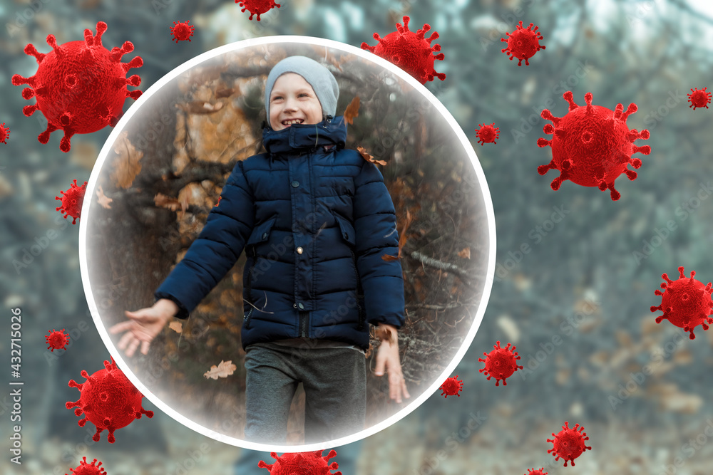 Happy Child is protected from viruses, bacteria and diseases. Healthy lifestyle, good immunity, vaccinations, vitamins.