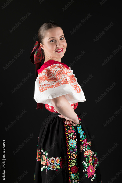 Young beautiful slovak woman in traditional dress. Slovak folklore
