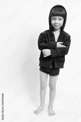 Asian Little Boy Wearing a Hoodie isolated White Background.