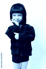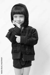 Asian Little Boy Wearing a Hoodie isolated White Background.
