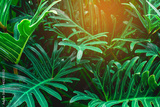 closeup nature view of tropical leaf background, dark tone concept