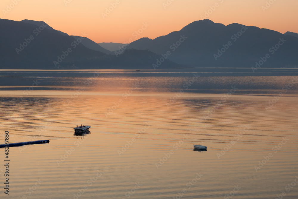 boats in the sea on sunrise