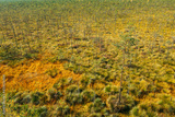 Bird's-eye View Of Pine Tree Growing in the swamp. Nature Of Belarus. Panorama, Panoramic View