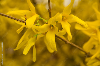 Yellow Forsythia Blooming in Spring
