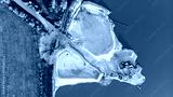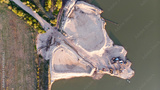 Aerial view of a sand processing plant on the river. Extraction and treatment of all types of natural sand.