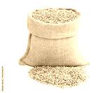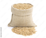 Seeds of coriander in a sack of isolated on a white background. Coriander in a burlap sack. Healthy food. Coriander in a jute bag. Vegan food