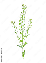 Thlaspi arvense, known by the common name field pennycress, is a flowering plant in the cabbage family Brassicaceae. High resolution composite photo.
