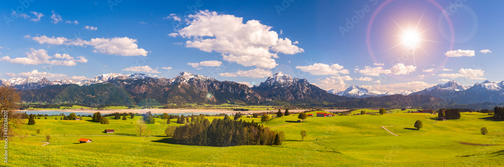 panoramic landscape with alps mountain range at springtime