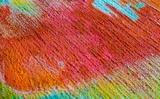 Oxidized etched copper, abstraction. Natural orange, blue. green yellow background with patina rusty copper plate