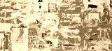 Vintage Billboard with Torn Poster, Paper, Ads, Stickers Wide Background Or Texture. Urban Creative Wallpaper for Design. Abstract Web Banner. Panoramic Backdrop and Creative Surface.