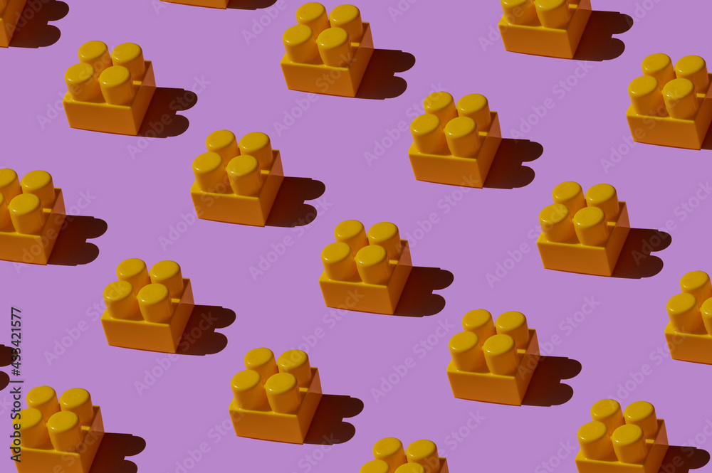 Yellow elements constructor trendy sunlight seamless pattern on purple background. Minimal concept