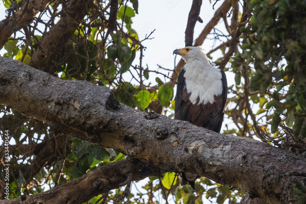 African Fish-eagle - Haliaeetus vocifer, beautiful large bird of prey from African woodland, lakes and open waters, lake Ziway, Ethiopia.
