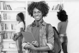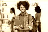 Joyful laughing afro american male college student