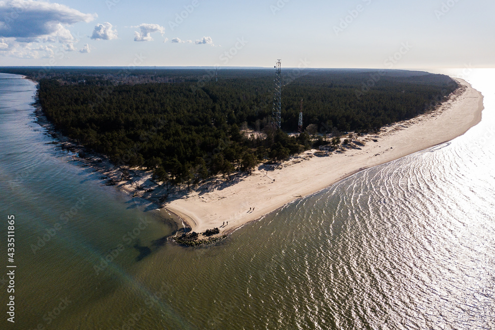 Aerial view of cape Kolka and Baltic sea, Latvia.