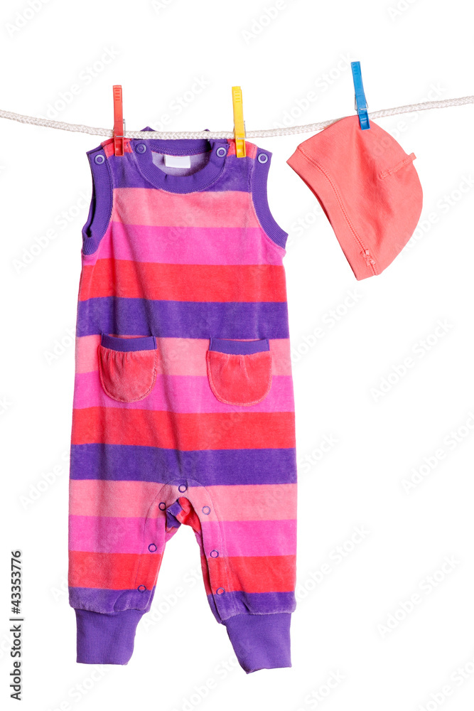 Clothing Hanging on a Clothesline Isolated on White Background