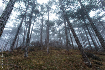 misty autumn forest in the morning