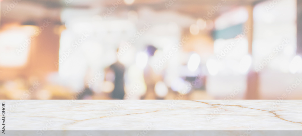 marble table top with blurred abstract cafe restaurant interior background