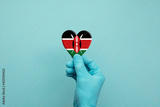 Hands wearing protective surgical gloves holding Kenya flag heart