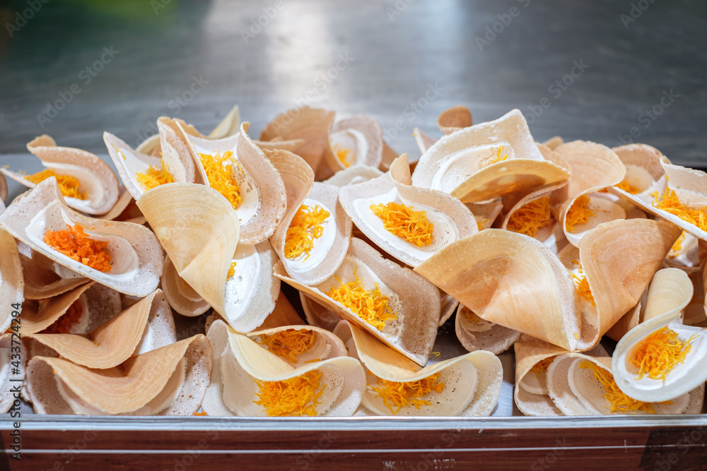 Fast food, desserts and various foods sold at the bazaar in the North of Thailand.