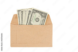 Dollar Money in brown envelope isolated on white background.Finance and business concept ,clipping path included.