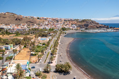 La Gomera. Aerial photo of the San Sebastian marina and town, La Gomera, Canary Islands.