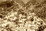 La Gomera - Roque El Cano and town Vallehermoso from above. La Gomera, Canary Islands.