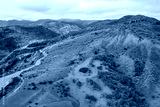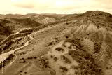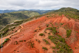 La Gomera, Canary Islands - Aerial view of erosion landscape with red soil on the north coast above Agulo with a view to Tenerife.