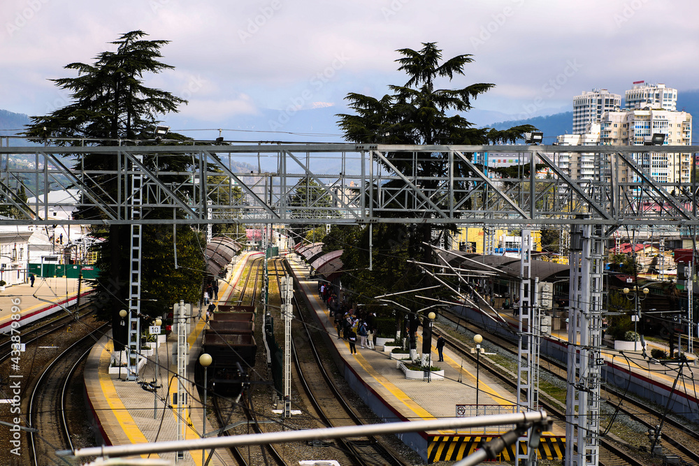 Railway station and roads for trains, travel concept, alternative modes of travel