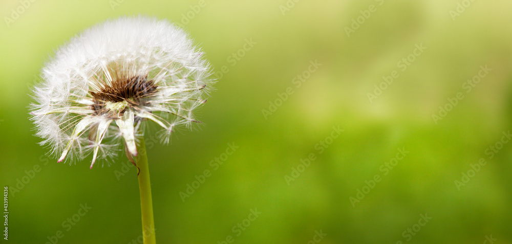 Dandelion in macro scale on a soft background. The concept of spring and summer. High resolution