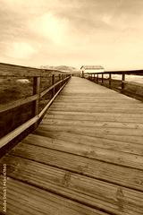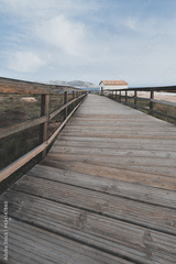 Vertical shot of a wooden path near the Mediterranean sea in Spain