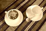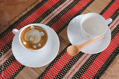 Fresh brewed coffees with beautiful latte art on surface.