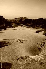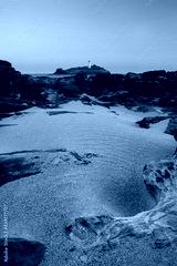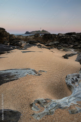 Beautiful and unusual landscape image of landmark Godrevy lighthouse on Cornwall's coastline