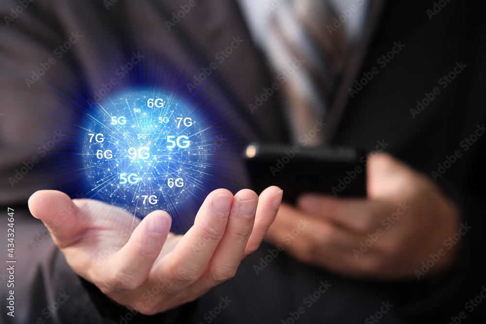 Businessman using a smartphone with internet and wifi network technology in future