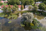 Aerial view of Kabile village in sunny summer day, Latvia.