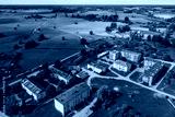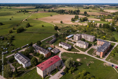Aerial view of Kabile village in sunny summer day, Latvia.