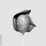 Modern design, contemporary art collage. Inspiration, idea, trendy urban magazine style. Female lips with candy on pink background.