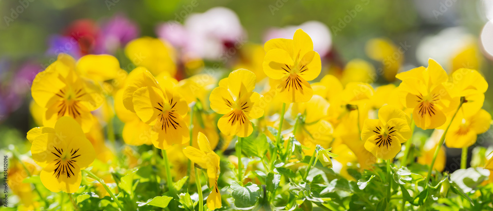 yellow pansy flowers in a garden