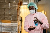 black worker washing clean hands with alcohol gel or antibacterial at factory workplace. hygiene care body sanitizer prevent germs bacteria and covid corona virus infections.