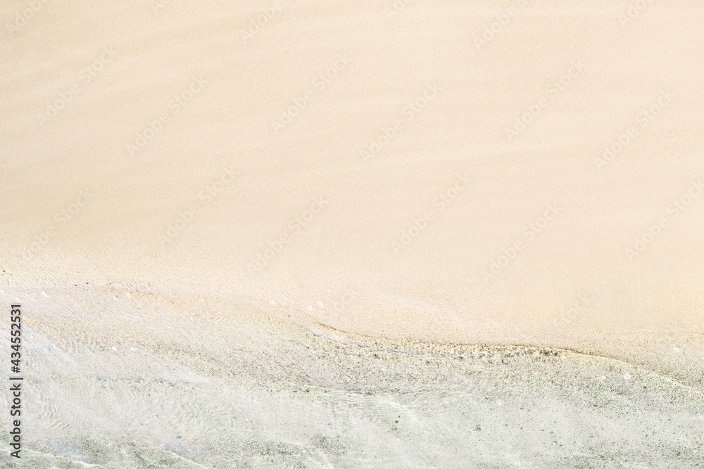 Top and aerial view on tropical sand beach with sea. Ocean coastline. Drone photo. Background