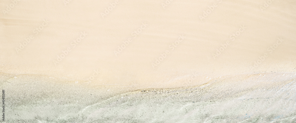 Top and aerial view on tropical sand beach with sea. Ocean coastline. Drone photo. Background. Panorama, 16:9