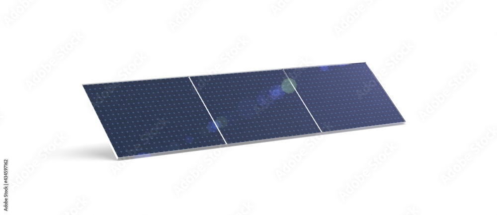 Closeup Of Solar Panels With Sunlight And Blue Sky Background 3d
